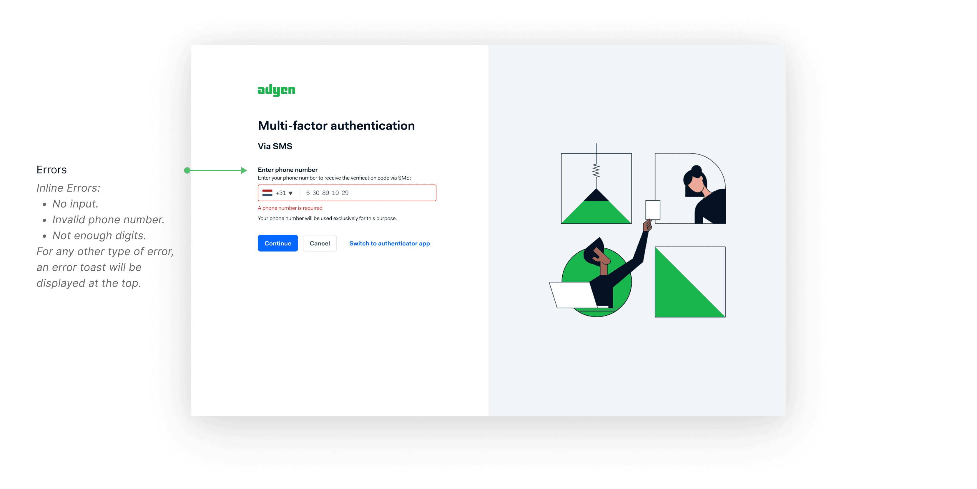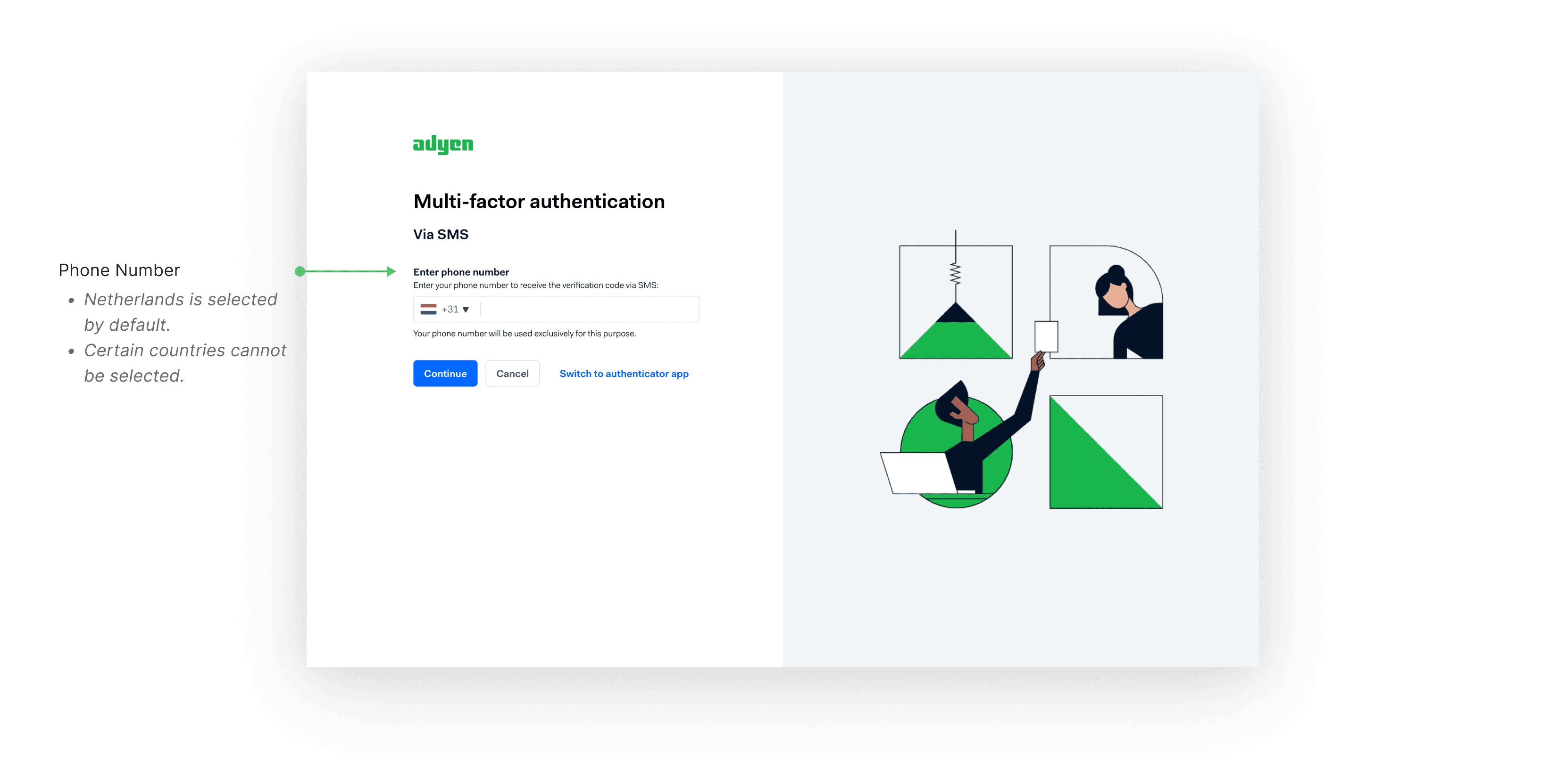 Offering the user the option to pick between SMS or Authenticator app