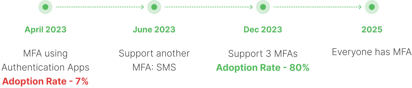 Despite the increasing prevalence of cyber threats, only 7% of our merchant users have adopted multi-factor authentication (MFA), leaving a significant majority vulnerable to security risks. Given the critical role of MFA in safeguarding sensitive data, this project aims to increase MFA adoption to 80% by identifying and addressing barriers to adoption, optimizing the user experience, and implementing effective incentives and communication strategies.